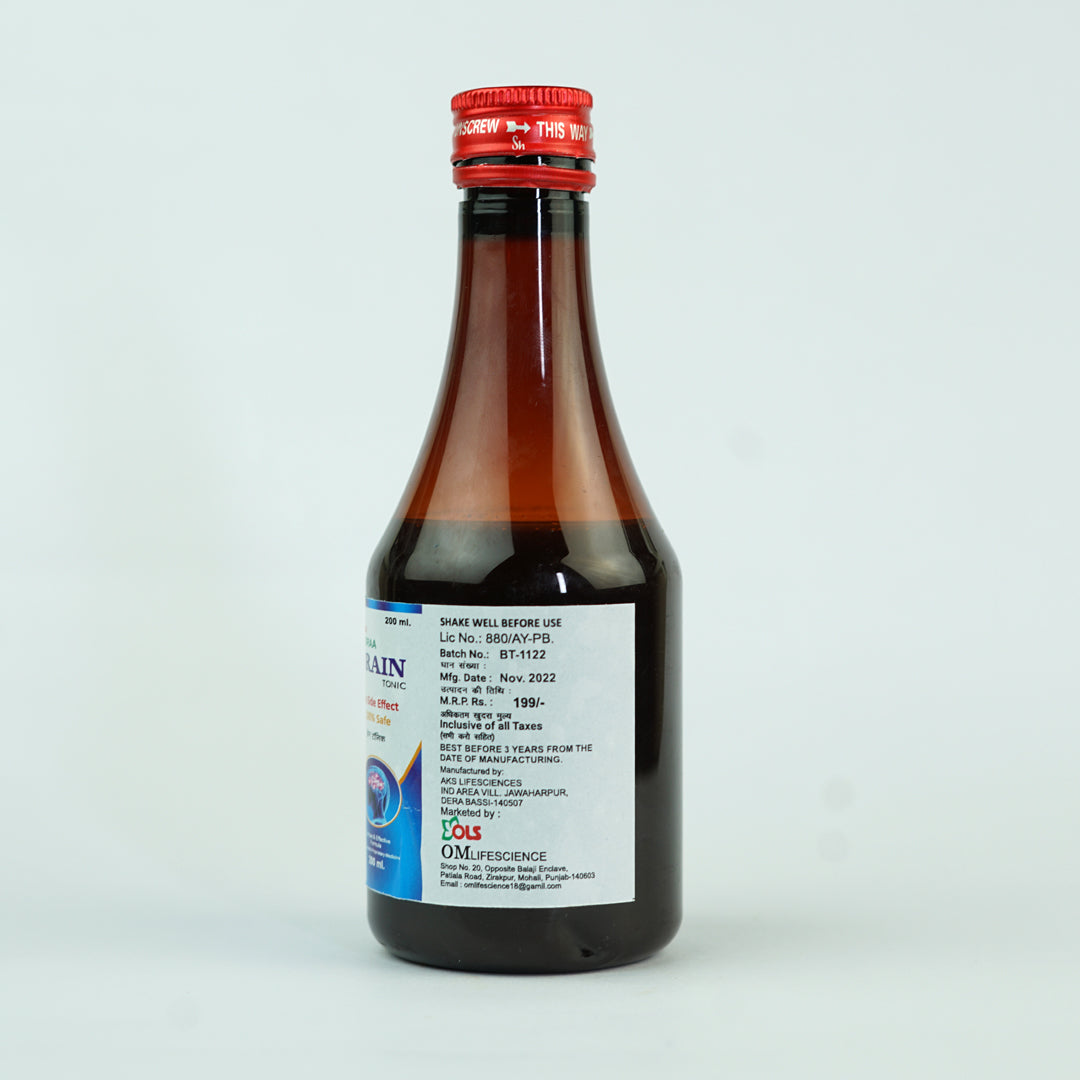 Brain Tonic is a herbal formulation designed to support cognitive health and mental performance. It helps improve memory, concentration, and focus while reducing mental fatigue, promoting overall brain wellness for all age groups.