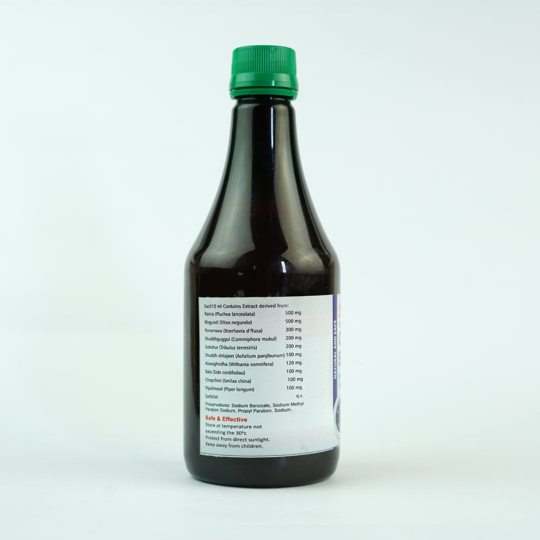 Ortho Syrup is a herbal formulation designed to support joint and bone health. It helps reduce inflammation, relieve joint pain, and improve flexibility, promoting overall musculoskeletal wellness for adults and the elderly.