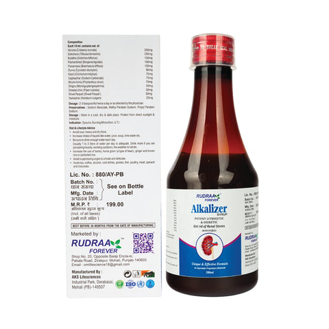 Alkalizer Syrup is a soothing Ayurvedic formulation that helps neutralize excess acid in the body and provides relief from burning urination, acidity, and urinary tract irritation. It supports kidney health and maintains the body’s natural pH balance, keeping you refreshed and active.