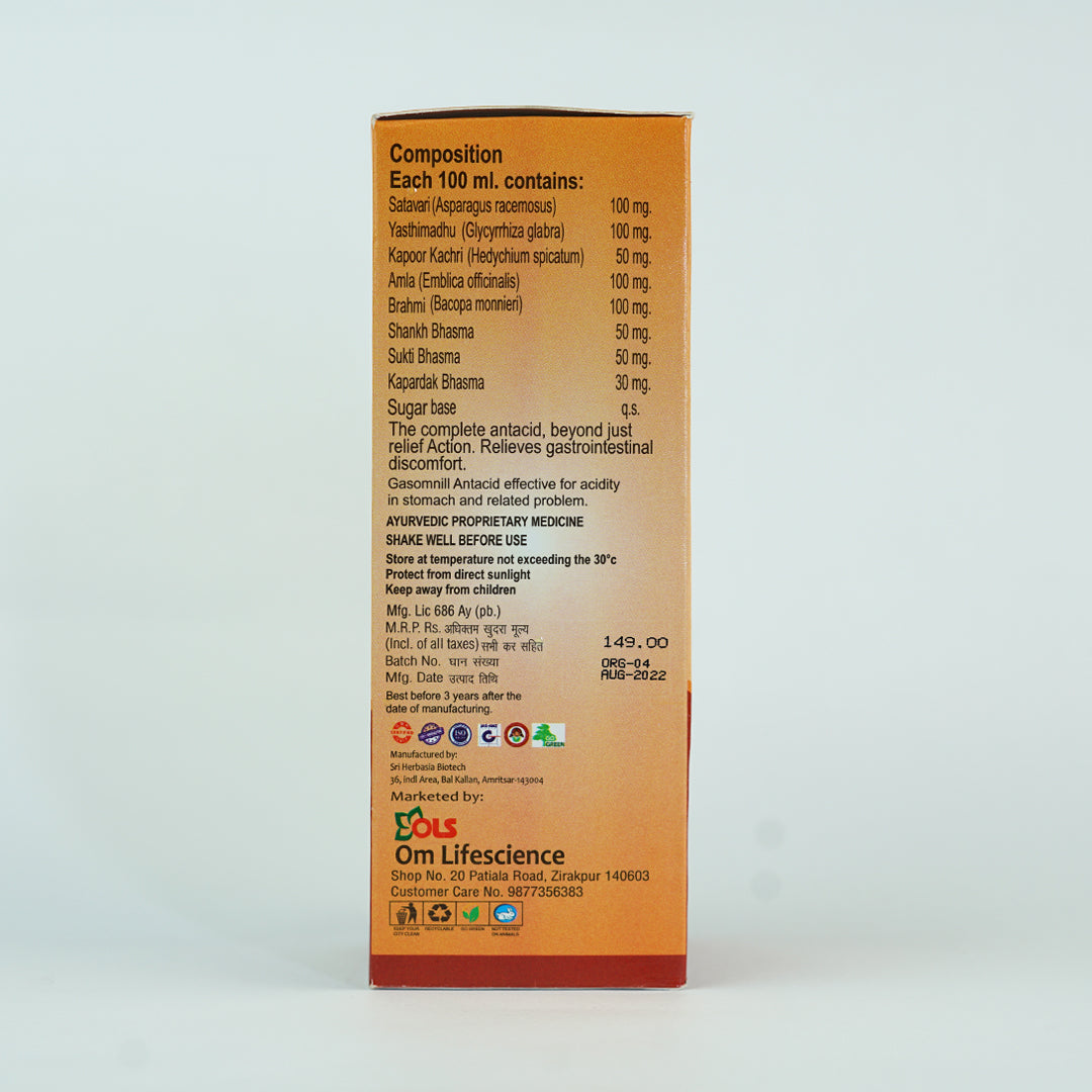 Gasomnill Syrup is a natural Ayurvedic digestive tonic that helps relieve gas, acidity, bloating, and indigestion. It soothes the stomach, improves digestion, and promotes overall digestive comfort. Regular use supports a light and healthy stomach, keeping you active and refreshed all day.