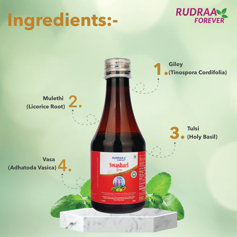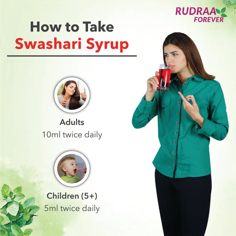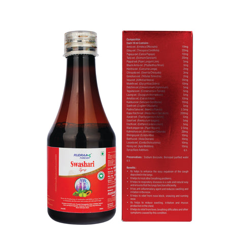 Swashari Syrup is a herbal formulation designed to support respiratory health. It helps relieve cough, congestion, and throat irritation while promoting clear airways and overall lung wellness for adults and children.