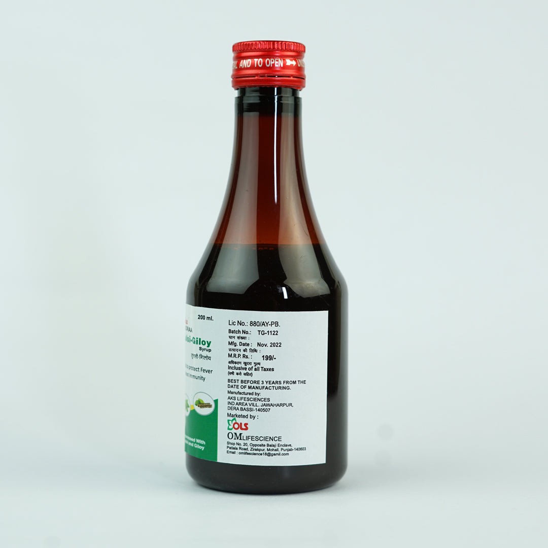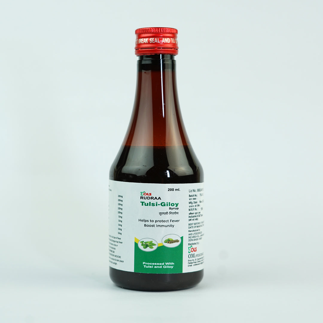 Tulsi Giloy Syrup is a natural immunity-boosting tonic crafted from the goodness of Tulsi and Giloy. It helps protect the body from infections, supports digestion, and promotes overall wellness for both adults and children.